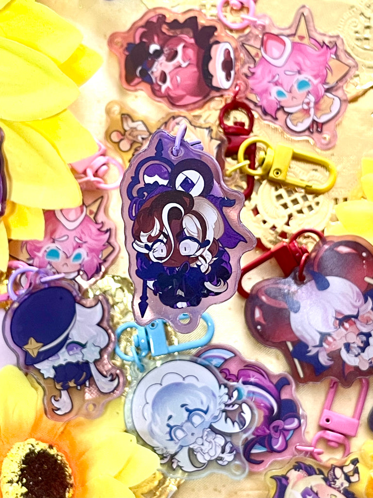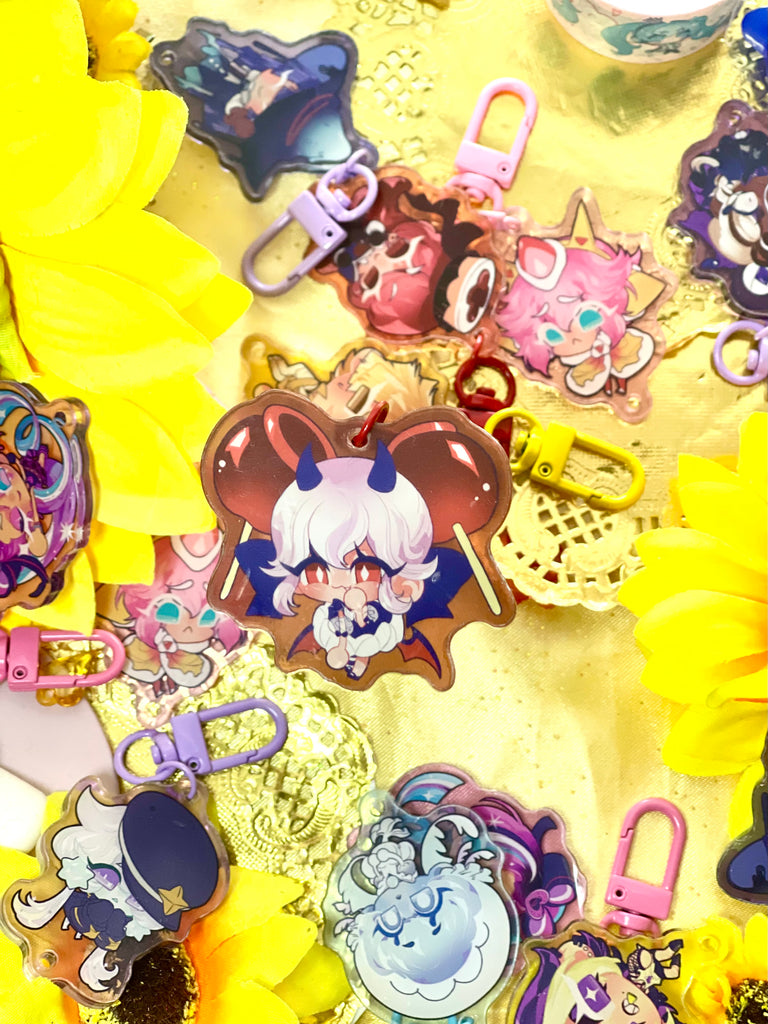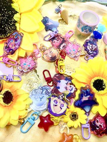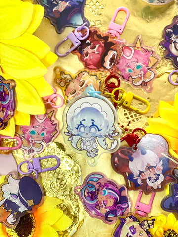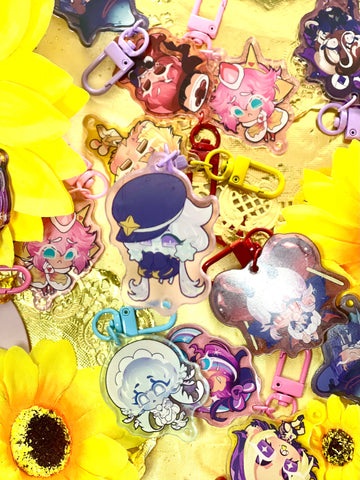 ★keychain details★ 2 inches. acrylic. attached with a coloured lobster clasp. coloured glitter orb accessory.