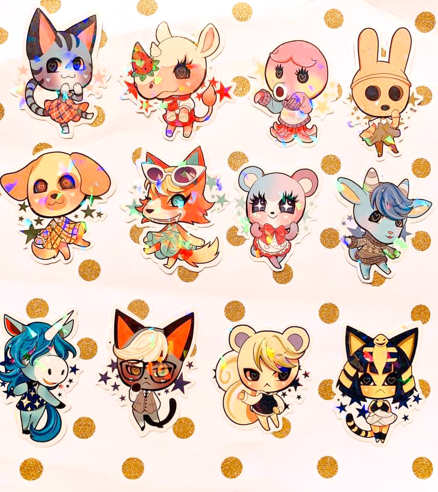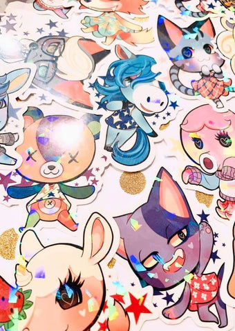 ★sticker details★ 3 inches. glossy. hi-res. hand-cut. waterproof. holographic laminate.★skins included★ lolly, merengue, marina, coco, goldie, audie, judy, sherb, julian, raymond, marshal, ankha, muffy, stitches, bob