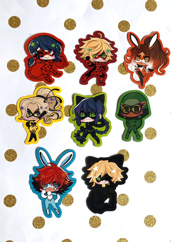 ★sticker details★ 2 inches. glossy. ★characters available★ ladybug, mister bug, rena rouge, queen bee, ladynoir, carapace, bunnyx, chat noir★ordering sets★please specify which characters you are interested during checkout in the note!